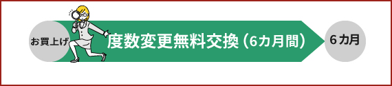 度数変更が必要な際にお買い上げ日から6カ月の間に1回限りレンズを交換致します。