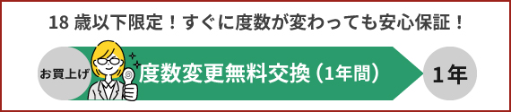 度数が変わりやすい18歳以下の方はお買い上げ日から1年間、何度でもレンズを交換致します。