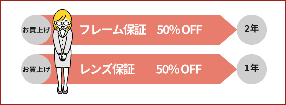 使用上の過失や天災による破損等の際に、店頭価格の50%OFFにて交換できる「アフター安心保証」をご用意しております。